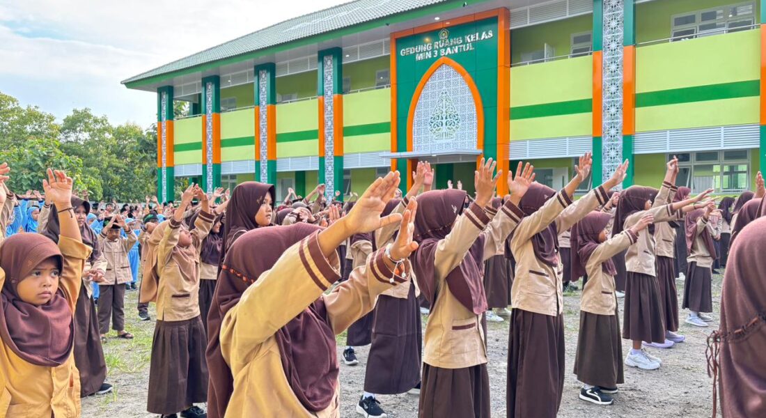 Bantul – Suasana ceria dan penuh energi menyelimuti halaman Madrasah Ibtidaiyah Negeri 3 Bantul pada Jumat pagi ini. Ratusan siswa bersama para guru dan staf tampak kompak berkumpul untuk mengikuti kegiatan Senam Sehat Jumat Pagi yang sudah menjadi agenda rutin madrasah.