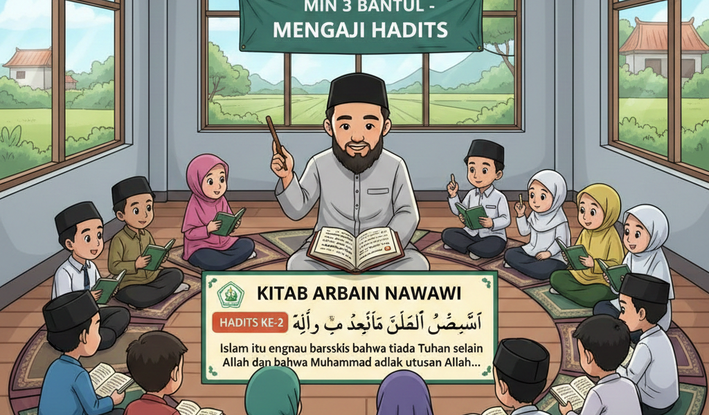 Bantul (MIN 3 Bantul) – Di tengah pesatnya perkembangan teknologi informasi, MIN 3 Bantul terus berinovasi dalam mensyiarkan nilai-nilai keislaman kepada seluruh siswa dan wali murid. Melalui platform media sosial resminya, madrasah ini menggelar kajian rutin “Hadits Arbain Nawawi”. Pekan ini, sorotan utama tertuju pada Hadits Kedua, yang populer dikenal sebagai Hadits Jibril.