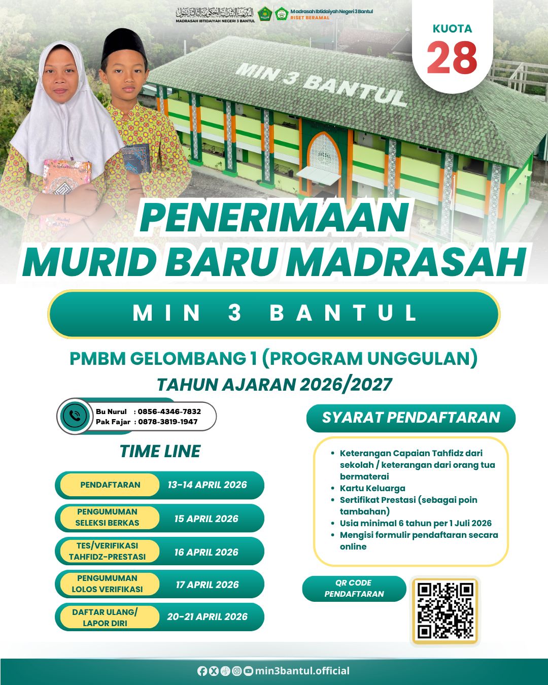 INFORMASI PENDAFTARAN PENERIMAAN MURID BARU MADRASAH (PMBM) MIN 3 BANTUL