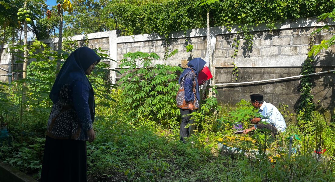 Salah satu titik utama yang menjadi perhatian dalam survey kali ini adalah Kebun NGTS (Nutrition Given Through School) milik madrasah. Tim dari Puskesmas Pajangan meninjau langsung kondisi kebun yang selama ini menjadi sarana edukasi gizi bagi para siswa.